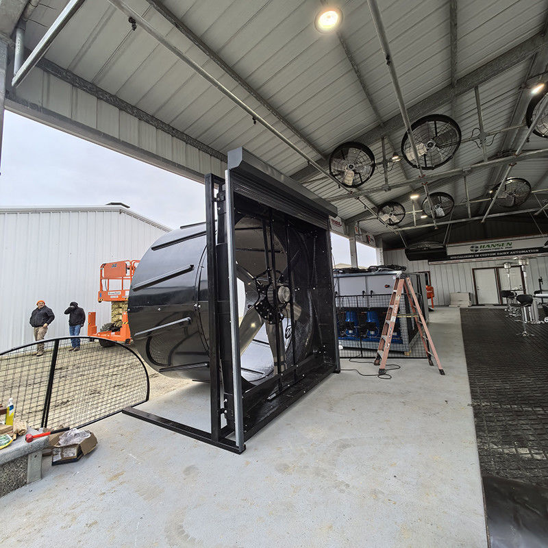 98"(2.48m)의 블레이드 직경을 갖춘 이 산업용 팬은 넓은 영역을 효과적으로 커버하도록 설계되어 철저한 공기 순환 및 환기를 보장합니다. 큰 블레이드 직경은 팬이 상당한 양의 공기를 효율적으로 이동할 수 있는 능력을 향상시켜 가축 및 가금류를 위한 더 건강한 환경에 기여합니다.